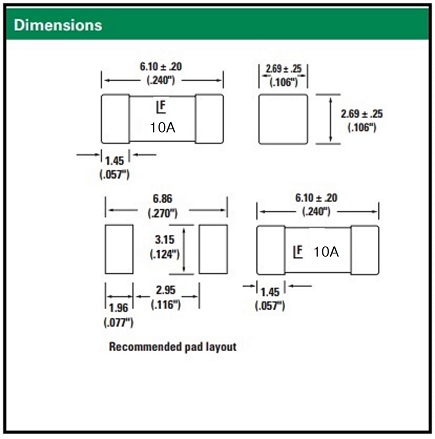 | Description | Size:6.1x2.69mm. 10A. Nano Surface Mount Very Fast Acting Fuse |