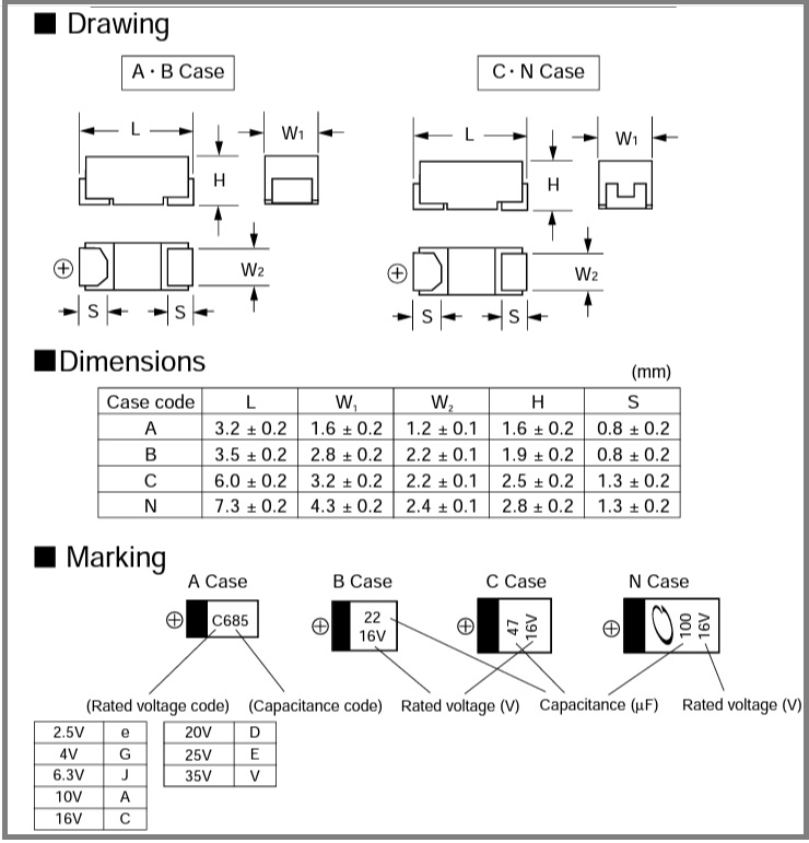 Size:3216, A-Case, 1uF 16V-20%, 1.0uF 16V-20%