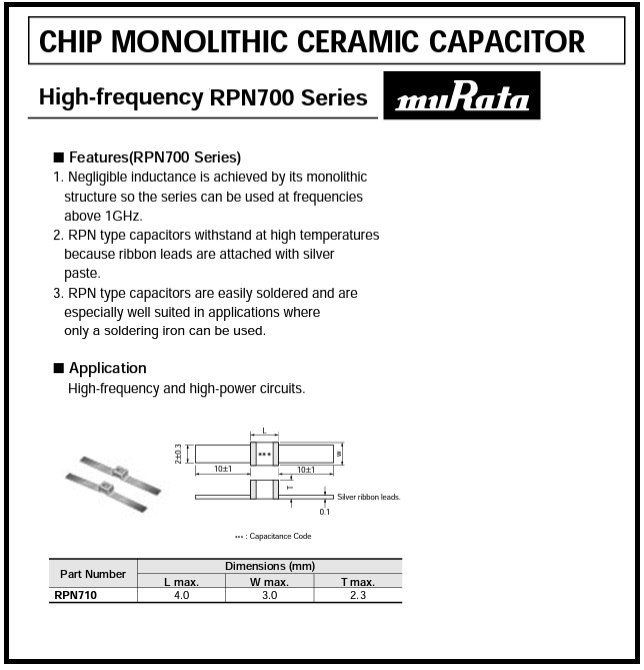 Part No: RPN710C0G220J200. 22pF200V-J