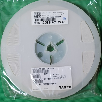 Size:3216 (1206). 2.49Kohm-F 1/4W. CHIP RESISTOR. 칩 저항