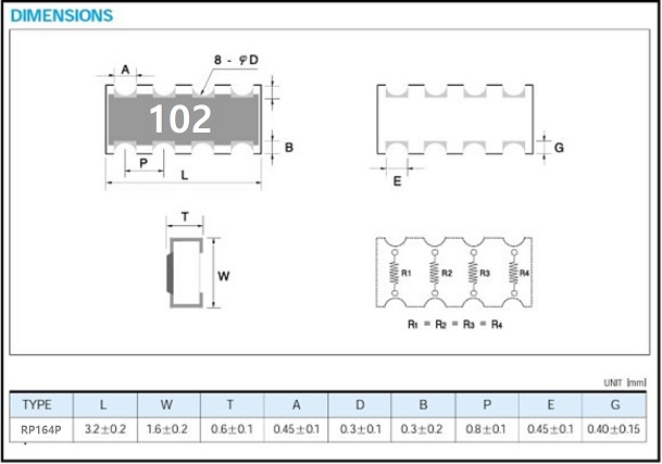 Size:3216(1206). 1608(0603)x4R. 1K OHM-5%.