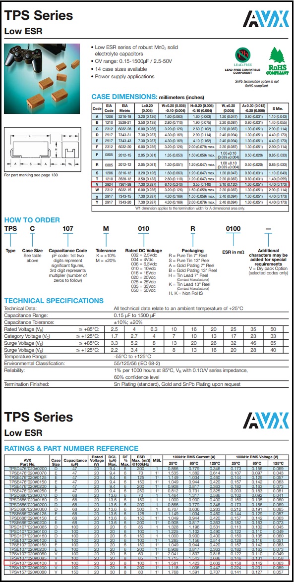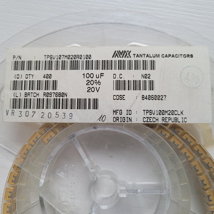 Description: Size:7361-38. V-Case. 100uF 20V-20%.