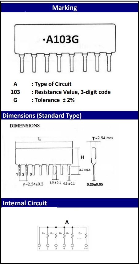 Description: SIP-9pin 15K OHM-5%. (Bussed Tpye. A-타입)