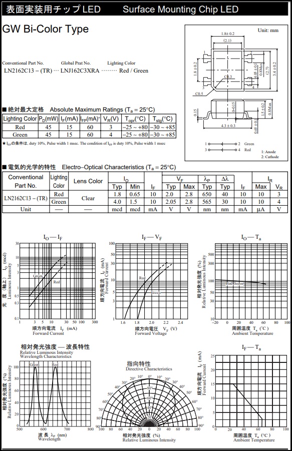 | (LTST-C150CKT. Red Color). (YGS150TS. Green Color). 1206(3216). SMD/Chip LED Lamp (0) | 2024.02.08 |