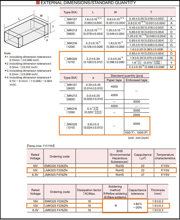 Part No. LMK325F226ZN-T. 22uF10V-Z. 226Z10V