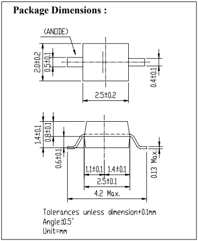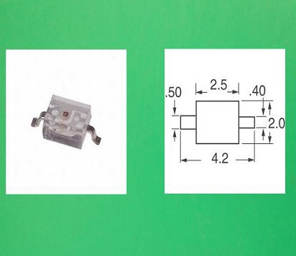 Size:4220(2.5x2.0mm). Super Red Color. 1.3mm Height Subminiature. Axial Flat Top LED Lamp