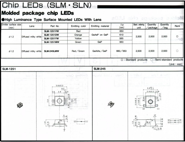 Size:4220 (2.5x2.0mm). Super Red Color. 1.3mm Height Subminiature. Axial Flat Top LED Lamp