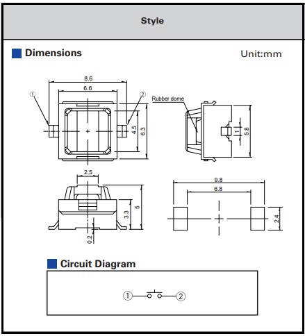 Description: Size:6.6x6.3x5mm, Operating force-2.45N