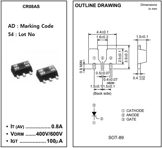 Description: SOT-89, 400V 0.8A
