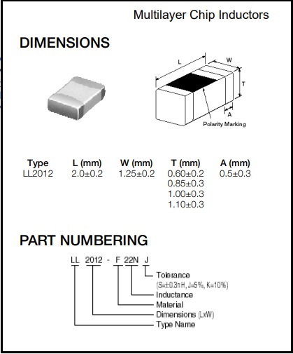 Size:2012(0805) 18nH-±10%, 0.018UH-±10%,