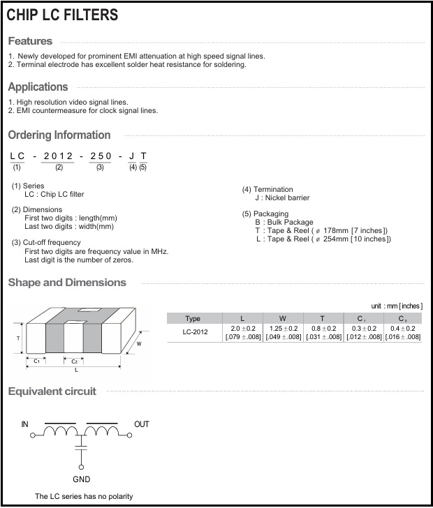 Multilayer SMD/Chip LC Filters, EMI Filtes